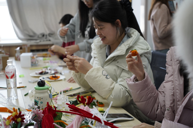 活动现场还准备了扭扭棒、陶泥、手链制作等DIY材料丰富的创作材料让大家尽情发挥巧思,亲手制作专属手作小物,在指尖的创作中感受美好,师生们围坐交流、分享喜悦,分享活动中的趣味瞬间与真切感受,进一步拉近了师生之间、同学之间的距离,让温暖与美好在彼此间传递。